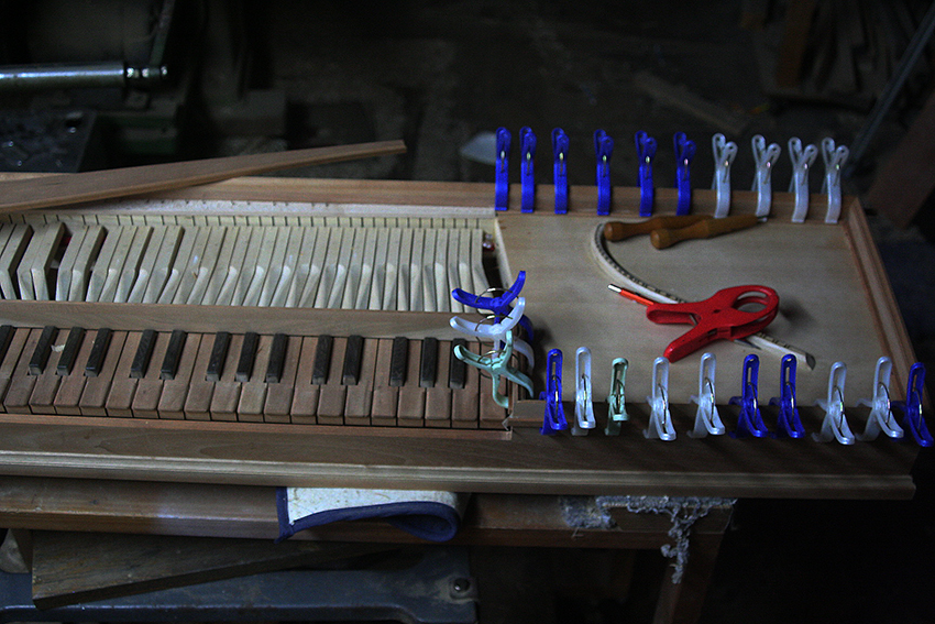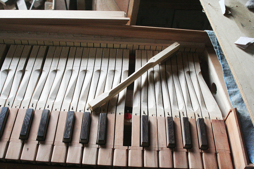 クラヴィコードのタンジェント打ち込みの途中です。やっと低音部CからHまでです。