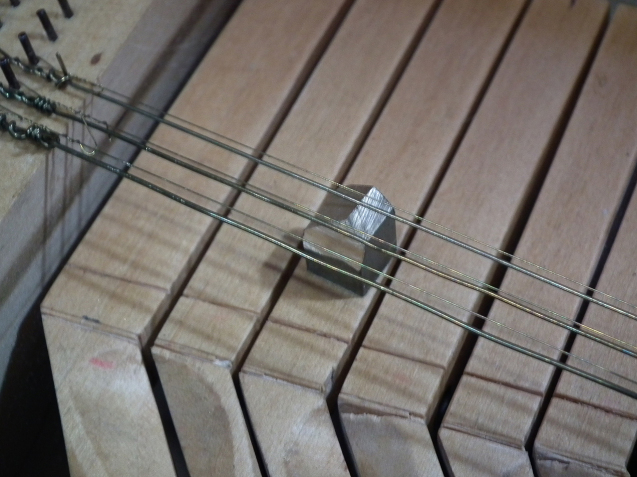 真鍮線は、弱テンションだと殆ど鳴ってくれません。大型リュートの低音部のオクターブのように指で