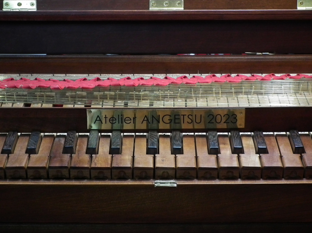 クラヴィコードのネームボードに付けるネームプレートを取り付けました。