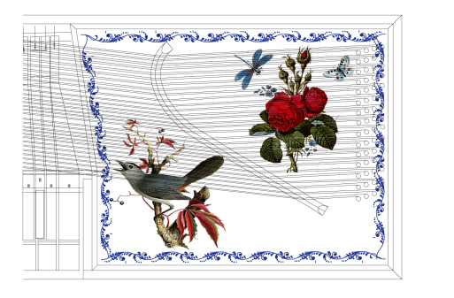 初めは、手書きで金文字を描こうとは思っていましたが、響板の絵と同じく