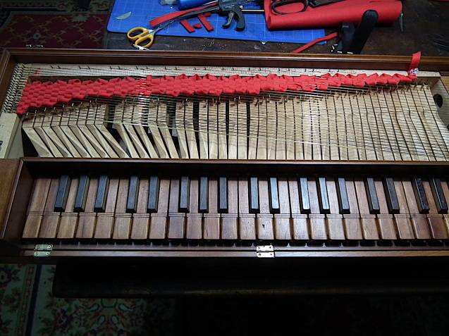 クラヴィコードの弦のフェルト巻きが一応終わりました。