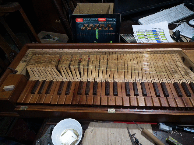クラヴィコードのタンジェント打ち込みがやっとこ3オクターブ目にきました。