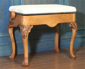 チッペンデール・カブリオル・スツール 猫脚に豪華な彫刻付き 高低ユニット内蔵で高さが調整可能 バーチ材(¥98,000) |